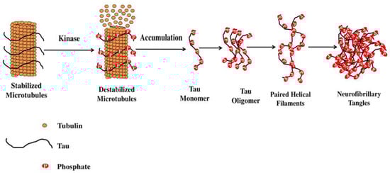 - Mamun, A.; Uddin, M.; Mathew, B.; Ashraf, G. Toxic tau: Structural origins of tau aggregation in Alzheimer’s disease. Neural Regen. Res. 2020, 15, 1417. [Google Scholar] [CrossRef]