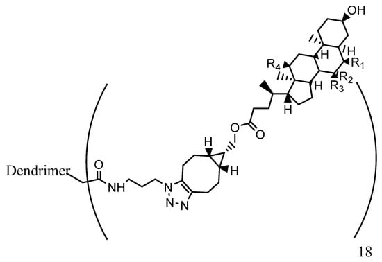 - Garzón-Porras, A.M.; Bertuzzi, D.L.; Lucas, K.; Ornelas, C. Anti-inflammatory activity of polyamide dendrimers bearing bile acid termini synthesized via SPAAC. J. Nanopart. Res. 2019, 21, 227. [Google Scholar] [CrossRef]