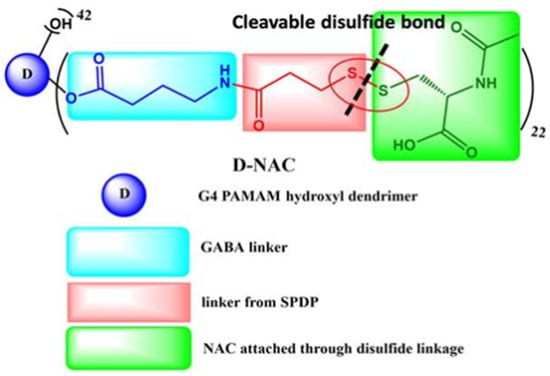 - Wang, B.; Navath, R.S.; Romero, R.; Kannan, S.; Kannan, R. Anti-inflammatory and anti-oxidant activity of anionic dendrimer–N-acetyl cysteine conjugates in activated microglial cells. Int. J. Pharm. 2009, 377, 159–168. [Google Scholar] [CrossRef]