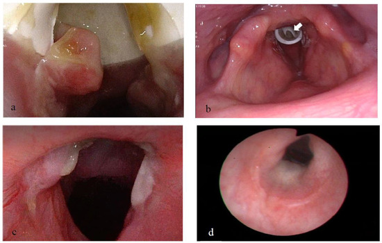- Scholfield, D.W.; Warner, E.; Ahmed, J.; Ghufoor, K. Subglottic and Tracheal Stenosis Associated with Coronavirus Disease 2019. J. Laryngol. Otol. 2021, 135, 656–658. [Google Scholar] [CrossRef] [PubMed]