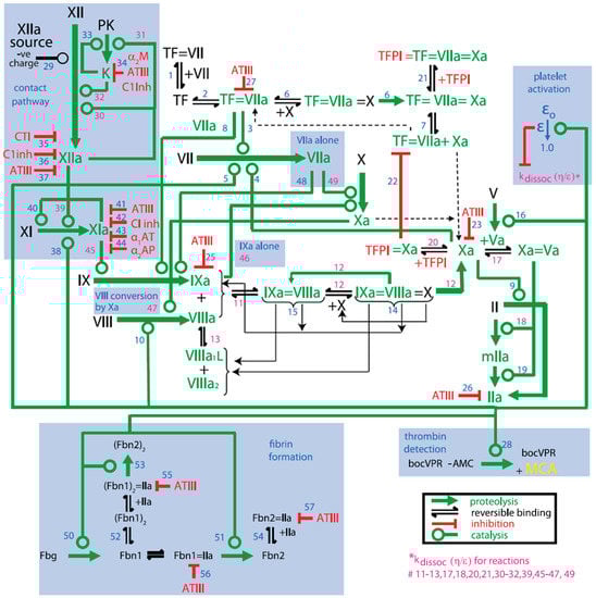 - Hockin, M.F.; Jones, K.C.; Everse, S.J.; Mann, K.G. A Model for the Stoichiometric Regulation of Blood Coagulation. J. Biol. Chem. 2002, 277, 18322–18333. [Google Scholar] [CrossRef] [PubMed]