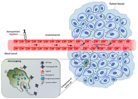 Using an active targeting method, nanoparticles (NPs) can increase the intracellular concentration of medications in malignant cells while minimizing damage in healthy cells. Bioscience-enhanced NPs are actively being developed for targeted drug administration, biomarkers for cancer using bimolecular profiling, and in vivo tumor imaging. The patient will need to take fewer doses more frequently, the drug will have a more consistent impact, there will be fewer side effects, and the levels of the drug in the blood will fluctuate less. These are all benefits of the active targeted release system. Active targeting entails adding various ligands to the medication or DDS, including vitamins, peptides, antibodies, sugars, and biological proteins. These ligands interact with cell receptors to form complexes that induce the drug to assemble within the target cells [,,].