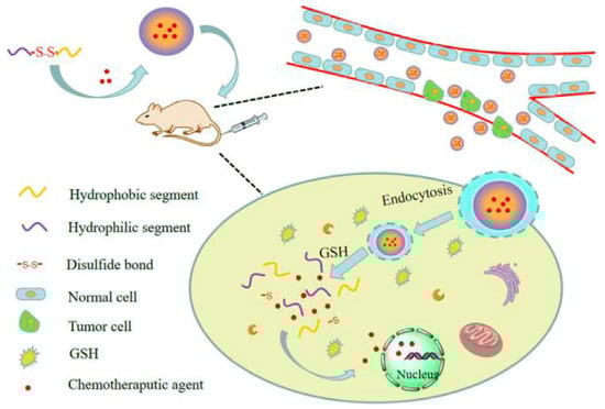 The biological process that is accountable for the release of redox-sensitive drug delivery devices. Reproduced with permission from []. Copyright 2019 Elsevier B.V.