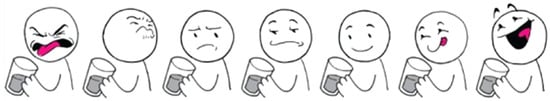 Seven facial children expression presented to estimate taste acceptance: TASTY scale adapted with permission from Ref. [16]. Copyright year 2020, copyright owner’s name the Pediatric Pharmacy Association (PPA).