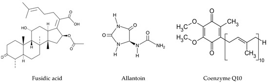 Allantoin (Ala) acts as a skin regeneration factor, contributes to collagen synthesis, accelerates the healing processes, and has a protective action against irritating factors, being included in the composition of topical products in concentrations of 0.5–2% [60,64,65,66].
