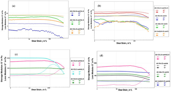 - Amplitude Sweeps: Anton Paar Wiki. Available online: https://wiki.anton-paar.com/en/amplitude-sweeps/ (accessed on 19 January 2023).
