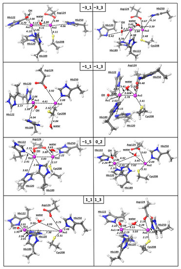 Table 3. The NBO atomic spin densities on each gold metal center with the respective coordinating protein atoms and on the hydroxyl or water oxygen are reported for the systems with multiplicities >1, i.e., B, DF, and H. All values are in a.u.
