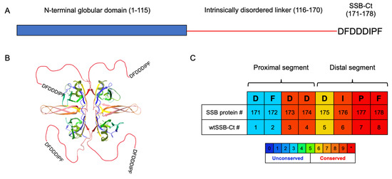 - Chase, J.W.; L’Italien, J.J.; Murphy, J.B.; Spicer, E.K.; Williams, K.R. Characterization of the Escherichia coli SSB-113 mutant single-stranded DNA-binding protein. Cloning of the gene, DNA and protein sequence analysis, high pressure liquid chromatography peptide mapping, and DNA-binding studies. J. Biol. Chem. 1984, 259, 805–814. [Google Scholar] [CrossRef]