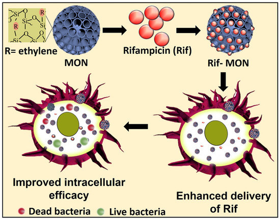 Schematic representation of intracellular antibacterial activity of rifampicin encapsulated in MON.