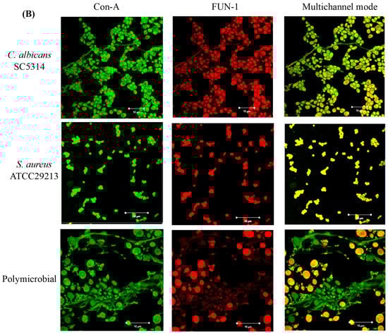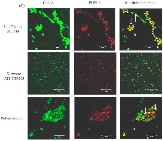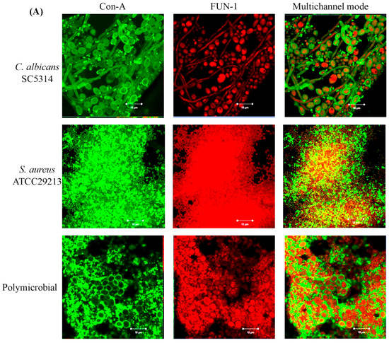 Increasing incidences of polymicrobial infections caused by fungi and bacteria in various hospital settings have been widely reported. Candida albicans and Staphylococcus aureus are the most frequently isolated microbes from invasive coinfections globally [,]. The medical implications associated with coinfections are a matter of grave concern; factors such as a limited treatment regimen, mainly when multi-drug resistant (MDR) strains (methicillin-resistant S. aureus, MRSA) are involved in biofilm formation, are responsible for high rates of mortality in immunocompromised patients [,,,].