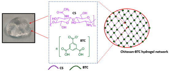2.2. Preparation of Chitosan–BTC Hydrogels