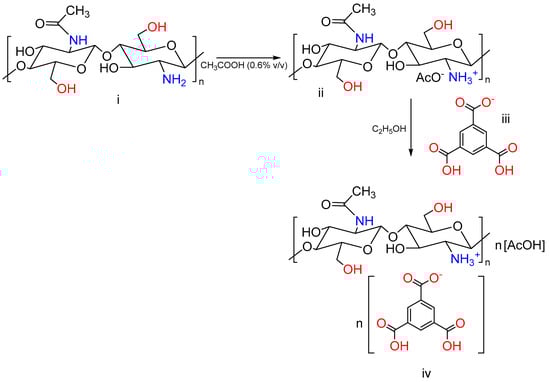 - Kildeeva, N.R.; Perminov, P.A.; Vladimirov, L.V.; Novikov, V.V.; Mikhailov, S.N. About mechanism of chitosan cross-linking with glutaraldehyde. Russ. J. Bioorganic Chem. 2009, 35, 360–369. [Google Scholar] [CrossRef]