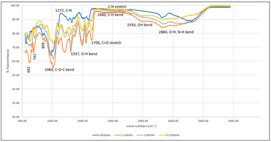 - Shigemasa, Y.; Matsuura, H.; Sashiwa, H.; Saimoto, H. Biological Macromolecules Evaluation of different absorbance ratios from infrared spectroscopy for analyzing the degree of deacetylation in chitin. Int. J. Biol. Macromol. 1996, 18, 237–242. [Google Scholar] [CrossRef] [PubMed]