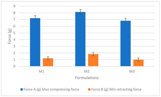 | Sample | (Max. Compressing Force, Hardness) | Cohesiveness | Min. Retracting Force | Adhesiveness |