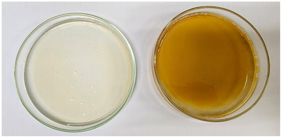 (left) Blank film and (right) topical film containing silver-nanoparticle-complexed G. applanatum.