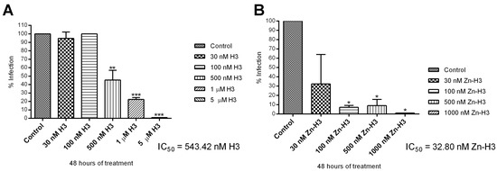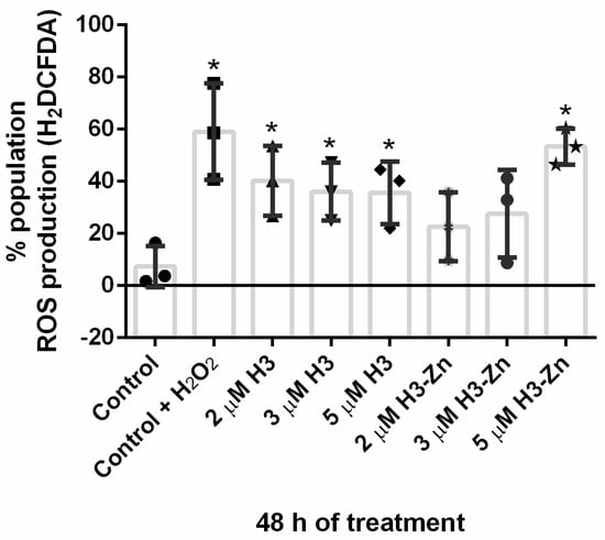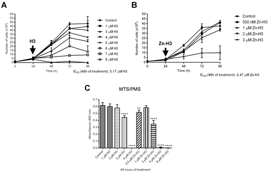 3.2.2. Free Sterol Analyses of L. amazonensis Promastigotes Control and Treated with H3 and ZnCl2(H3)2