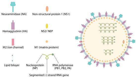 The first line of defense against influenza viruses is the innate immune system, which greatly increases damage in 650,000 people worldwide []. As the influenza virus mutates rapidly, causing antigenic drift, new strains are persistently emerging, with their characteristic drug resistance remaining a prevalent issue [,,,]. One of the key goals in this field is to create a broadly protective, universal influenza vaccine that can provide immunity against different strains of influenza and end seasonal vaccinations [,].