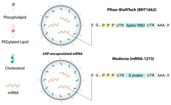 Structure of Pfizer-BioNTech (BNT162b2) and Moderna (mRNA-1273) vaccines.