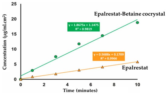 Intrinsic dissolution rate experiment results of epalrestat and its cocrystal. Reprinted (adapted) with permission from [21]. Copyright (2018) American Chemical Society.