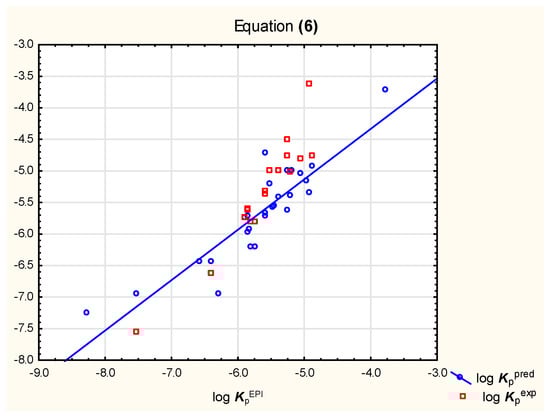 Equation (6)—predicted and experimental log Kp vs. reference values.