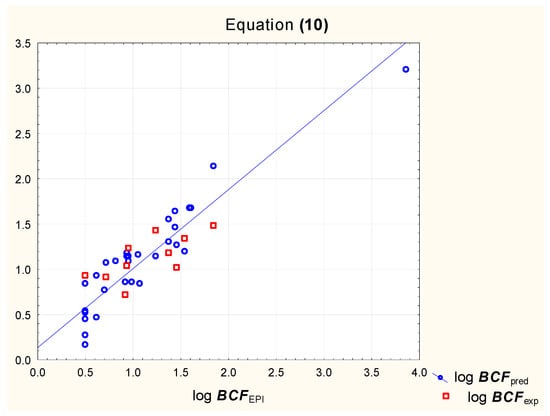 Equation (10)—predicted and experimental log BCF vs. reference values.