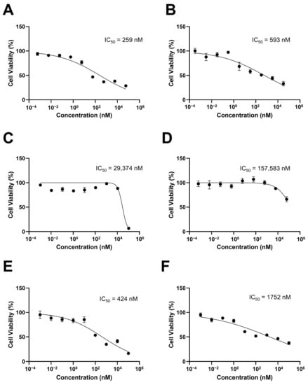 D1 and D2 are the IC50 values obtained by considering the mole fraction of the IC50 (50% inhibitory concentration) value of each combination drug, and Dx1 and Dx2 are the IC50 values of a single drug. CI < 1, = 1, and > 1 indicate synergism, additive effect, and antagonism, respectively. In addition, CI values of 0.1–0.3 are subdivided into strong synergism, 0.3–0.7 synergism, 0.7–0.85 moderate synergism, and 0.85–0.90 weak synergism [45,46,47].