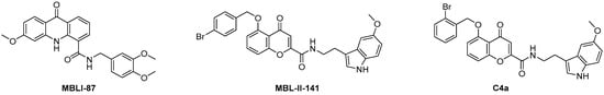 Chemical structure of acridone MBLI-87, chromones MBL-II-141 and chromone 4a (C4a).