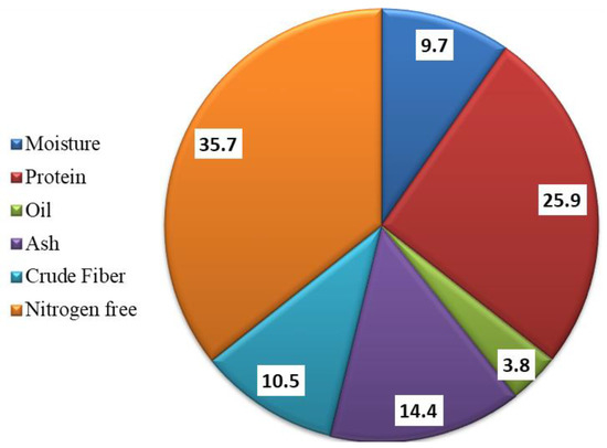 Moisture, protein, oil, ash, and fiber were determined according to AOCS 2005 standard analysis methods, and the nitrogen-free extract was calculated.