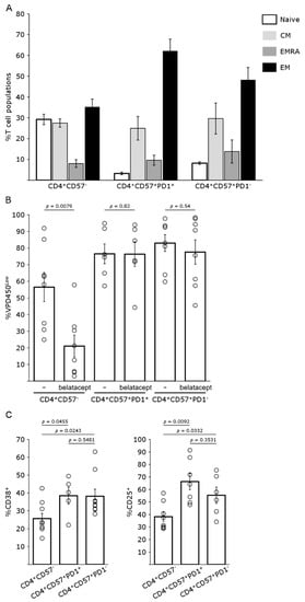 4.1. CD4+CD57+PD1− Cells Are Resistant to Belatacept