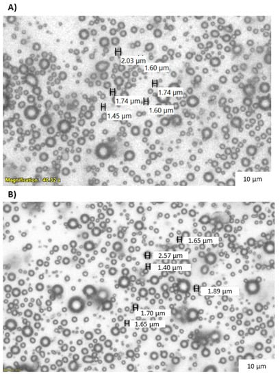 Light microscopy images of (A) SE61O2 and (B) SE61O2/LND.