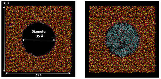 - Renou, R.; Szymczyk, A.; Ghoufi, A. Water Confinement in Nanoporous Silica Materials. J. Chem. Phys. 2014, 140, 044704. [Google Scholar] [CrossRef]