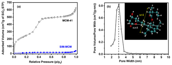 | MCM-41 | 927.3 | 0.84 | 3.0 (a); 3.5 (b) |