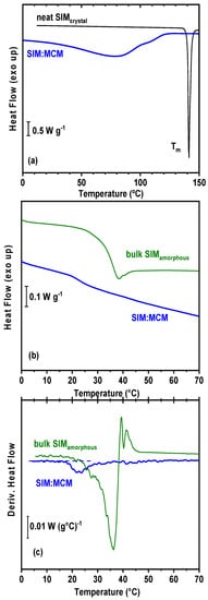 Cordeiro, T.; Matos, I.; Danède, F.; Sotomayor, J.C.; Fonseca, I.M.; Corvo, M.C.; Dionísio, M.; Viciosa, M.T.; Affouard, F.; Correia, N.T. Evidence of Strong Guest–Host Interactions in Simvastatin Loaded in Mesoporous Silica MCM-41. Pharmaceutics 2023, 15, 1320. https://doi.org/10.3390/pharmaceutics15051320