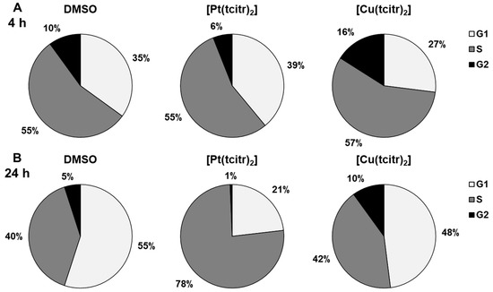 On the other hand, [Cu(tcitr)2] did not induce cell cycle alterations upon 24 h treatment, in comparison with untreated cells (Figure 2B).
