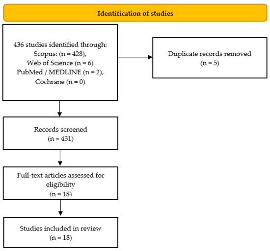 Details of the selection process are summarized in a custom-built PRISMA flow chart (Figure 1). Upon implementing the search strategy outlined above, a total of 18 articles were identified that met all the inclusion criteria [12,13,14,15,16,17,18,19,20,21,22,23,24,25,26,27,28,29]. The articles were analyzed for their basic data and the main results are described in Table 2, though more detailed information is also presented in Table S2.