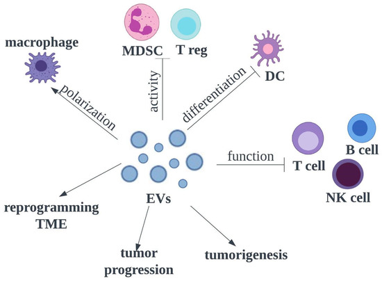Recently, several studies have demonstrated that tumour-derived EVs (TEVs) have potential in immunomodulation and play an important role in the escape of tumour cells from immune surveillance. It has been observed that TEVs can activate CD4+ T cells to promote the mitochondrial apoptotic pathway [56].