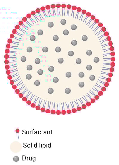Basic structure of solid lipid nanoparticles. (Created using Biorender).