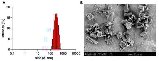 The size, polydispersity index (PDI), and zeta potential of CUR-NCs were measured by a Malvern Zetasizer Nano (Malvern Instruments, Malvern, UK). CUR-NC suspensions were diluted 10-fold by deionized water before tests. The diluted CUR-NC suspensions were added into folded capillary cells with liquid level over electrodes for zeta potential tests. The morphology of CUR-NCs was observed by scanning electron microscopy (SEM) (SU8010, Hitachi, Tokyo, Japan). Before observation at an accelerating voltage of 1.0 KV, CUR-NC powder was sputter-coated with gold.