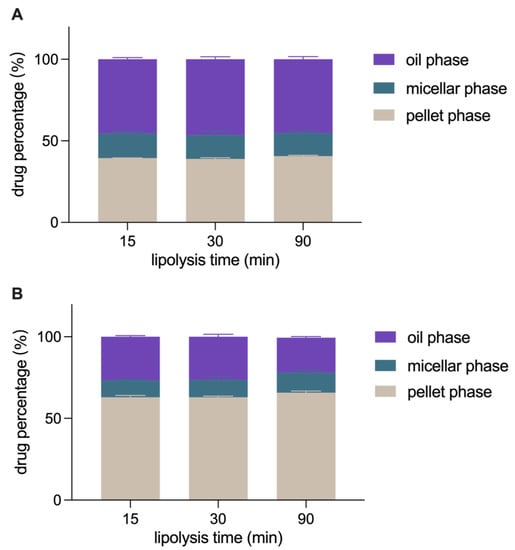 The in vitro lipolysis profiles of (A) IPP-PEs and (B) SO-PEs in FaSSIF.