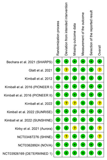 Summary of risk-of-bias assessment [21,22,23,24,25,26,27,28,29,30,31].