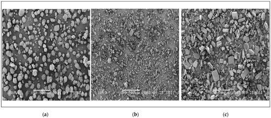 SEM-images of (a) riboflavin, (b) nicotinic acid and (c) ascorbic acid. The powders have been magnified up to 50 times, the bar on the pictures is equal to 500 µm.