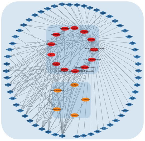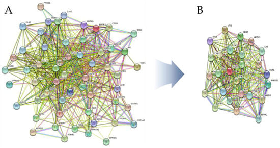 - Shannon, P.; Markiel, A.; Ozier, O.; Baliga, N.S.; Wang, J.T.; Ramage, D.; Amin, N.; Schwikowski, B.; Ideker, T. Cytoscape: A Software Environment for Integrated Models of Biomolecular Interaction Networks. Genome Res. 2003, 13, 2498–2504. [Google Scholar] [CrossRef]