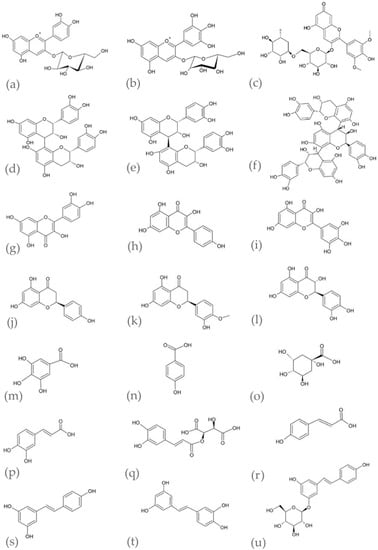 - Goufo, P.; Singh, R.K.; Cortez, I. A Reference List of Phenolic Compounds (Including Stilbenes ) in Grapevine (Vitis vinifera L.). Antioxidants 2020, 9, 398. [Google Scholar] [CrossRef]