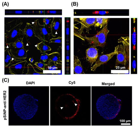 The active targeting of Ab-coated pSiNPs was confirmed using a confocal laser scanning microscope (Leica TCS SP8, Leica Microsystems, Wetzlar, Germany).