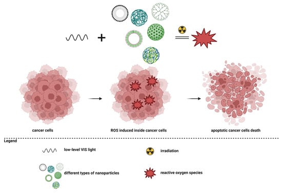Nanoparticles are tiny materials having size ranges from 1 to 100 nm that can be obtained naturally or synthesized artificially, and research has shown that they are more effective than chemotherapy or radiotherapy used independently, producing minor adverse reactions [14,21,22,23]. Nanomaterials are used as biological markers, contrast agents for imaging, medical care products, pharmaceutical products, and drug delivery systems, as well as in the detection, diagnosis, and treatment of various types of diseases, including cancer [18,24,25,26].