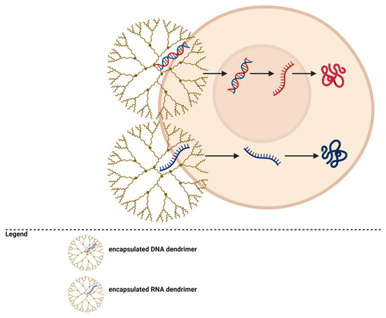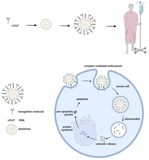 The mechanism of gene therapy using dendrimers is presented in Figure 5.