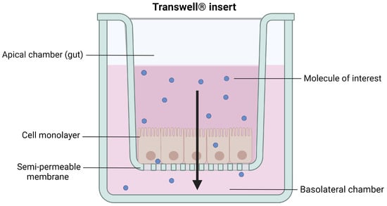 Schematic representation of cells grown on a Transwell® insert. Created with Biorender.com (accessed on 17 January 2023).