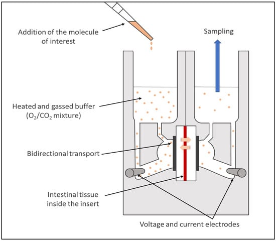 Gastro-intestinal (GI) barriers, including the intestinal epithelium restricting the passive transport of large molecules [,] and the harsh environment of the tract, prevent biological drugs to attain an effective therapeutic concentration in blood. In-depth understanding of the parameters influencing bioavailability is a key to improve the design and development of orally delivered biotherapeutics []. Hence, in vivo experiments became an inevitable step to investigate the mechanisms of transport and to ensure that a molecule is safe and effective in a living biological system. However, ethical considerations and animal protection [] encouraged the development of alternative models mimicking the human physiology. In this context, preclinical in vitro and ex vivo methodologies have been developed and optimized by the scientific community over the years to study drug permeability []. In vitro systems display several advantages: they are cheap, fast, and can be adapted to high throughput screening []. However, numerous examples of these models are lacking some crucial aspects of intestinal physiology. That is why, more complex ex vivo approaches using viable and functional extracted tissues or organs are employed in combination with these cell-based systems [,].