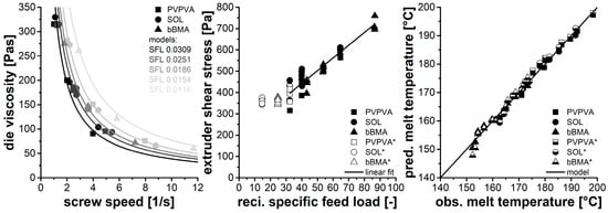 - Gottschalk, T.; Özbay, C.; Feuerbach, T.; Thommes, M. Predicting Throughput and Melt Temperature in Pharmaceutical Hot Melt Extrusion. Pharmaceutics 2022, 14, 1757. [Google Scholar] [CrossRef] [PubMed]