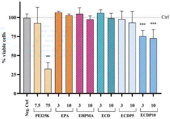 - Breunig, M.; Lungwitz, U.; Liebl, R.; Goepferich, A. Breaking up the correlation between efficacy and toxicity for nonviral gene delivery. Proc. Natl. Acad. Sci. USA 2007, 104, 14454–14459. [Google Scholar] [CrossRef] [PubMed]